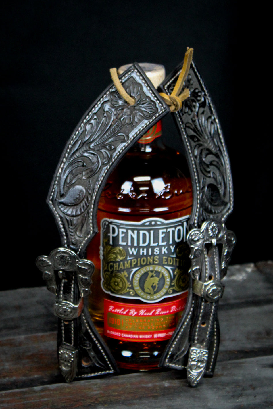 Black spur straps tooled